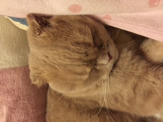 ☆猫ちゃんが、お腹を上に出して寝てる・・・・本当に無防備で、安心してる場所じゃなければ、へそ天して、熟睡しないんですから。うんと大事にしてもらってるんだと思います。去勢して、子供に戻っちゃったみたいな顔してる(^^)