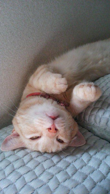 →「我が家に来た当初はあまり鳴かず大人しい子でしたが、最近では呼ぶと返事をしたりご飯の催促をしたりとよくお喋りするようになり、私の後をついて歩いたり、台所に立つと足に頭突きしてきたり、構えと鳴いて転がってみたり、だいぶ自己主張するようになりました」