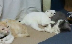 でも、猫の本能で、短い足の子は、サカリが来た!と男の子に勘違いされる事が多いんです。そしたら、走って行って、上から乗っかって離さないみたいな・・・短い足で、「やめて!」って言っても、まるでコントみたいで(^^)