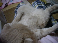 いつも大また開き(^^;そして、この体勢で寝る(^^;私助かる(^^) あったか~い(^^)