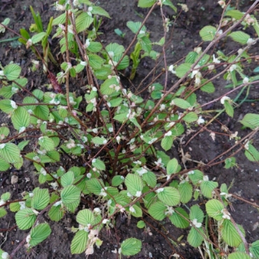 八重かどうかは分からないけど、他所んちの垣根からも生えてた。鳥が運ぶ?実がなる?