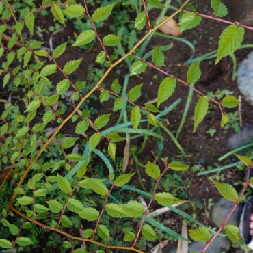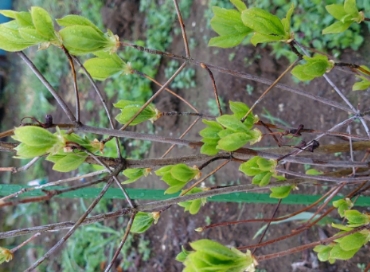 口紅は葉っぱ。白いのは先に咲いたのに。今年はもう咲いちゃったのかな?