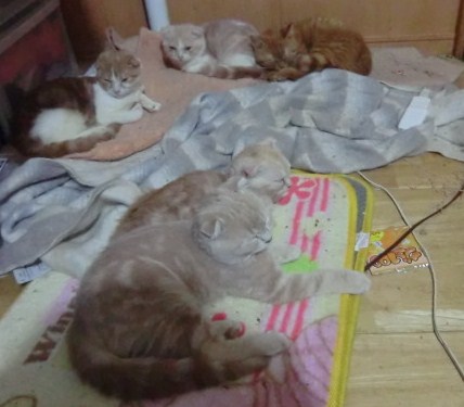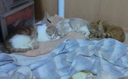 クリーム2匹並んで寝てます。大きさが違うんね。