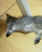 ・・・私が暑くてばてるので、オス部屋は、冷房28-26度です。全員大人なので、「涼しいー♪」て、昼寝してます(^^)
