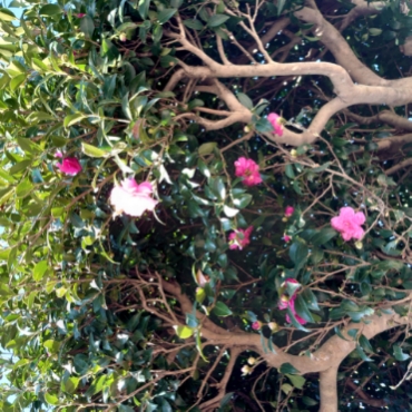 山茶花、花びらが散る。椿は花のまま