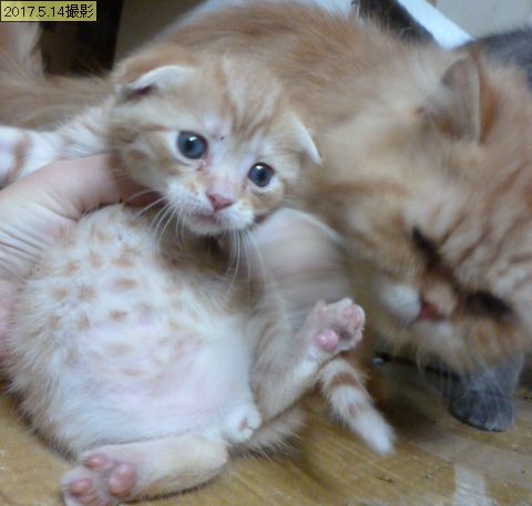 ☆☆一番の心配の種だったマンチカンのロング(毛玉 って名前です。お尻に毛玉できるけど、機嫌の良いときしか、とらせてくれません)は、同じロングヘアの姉弟。スコと、意外や以外、気が合ったようで、全然、平気だった(^^)これは、気が難しい子なので、私が飼おうと思ってますので、安売りは無いです。・・・嫌だー!って、すっごい声で叫ぶので、うちの種オスもビビるぐらいです(^^;私には抱っこするんですが、好きと嫌いが激しいんです。こうゆう子も珍しい。